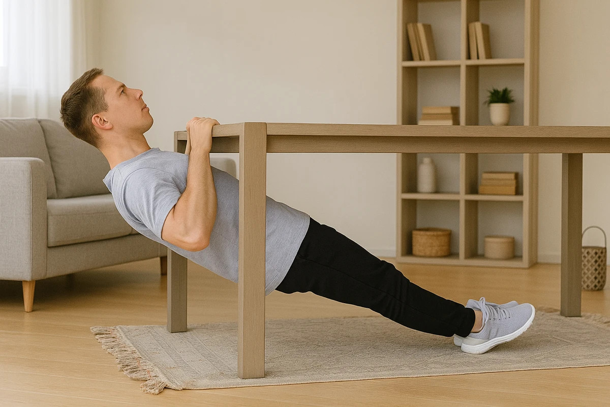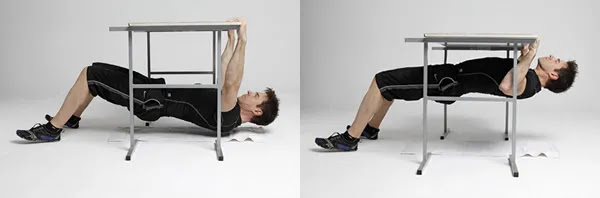 - 6 rep dominadas debajo de la mesa (sin peso, solo tu propio peso corporal)